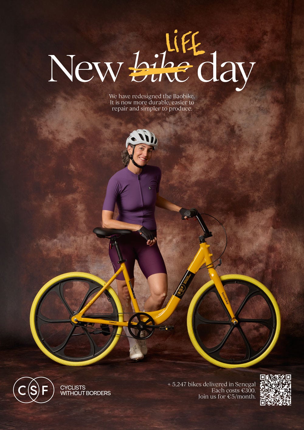 El lanzamiento de CsF se acompaña de la presentación oficial de la nueva Baobike, un modelo concebido específicamente para el entorno rural de Senegal. La bicicleta ha sido diseñada para soportar condiciones extremas y convertirse en una herramienta de acceso a la escuela, al trabajo y a nuevas oportunidades.
