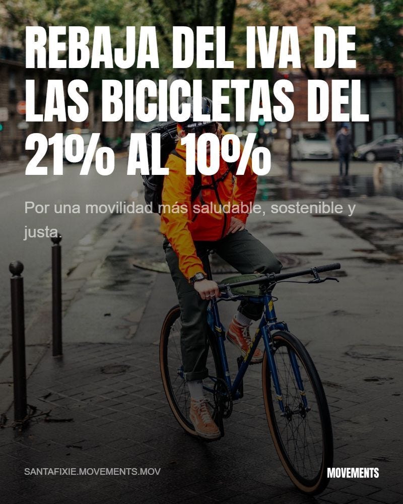 Desde el ámbito asociativo se subraya, además, la incoherencia entre el discurso institucional que sitúa a la bicicleta como eje de la movilidad sostenible y una fiscalidad que la trata como un bien de consumo estándar. Más aún cuando la normativa europea ya permite a los Estados miembros aplicar tipos reducidos a la venta, alquiler y reparación de bicicletas.