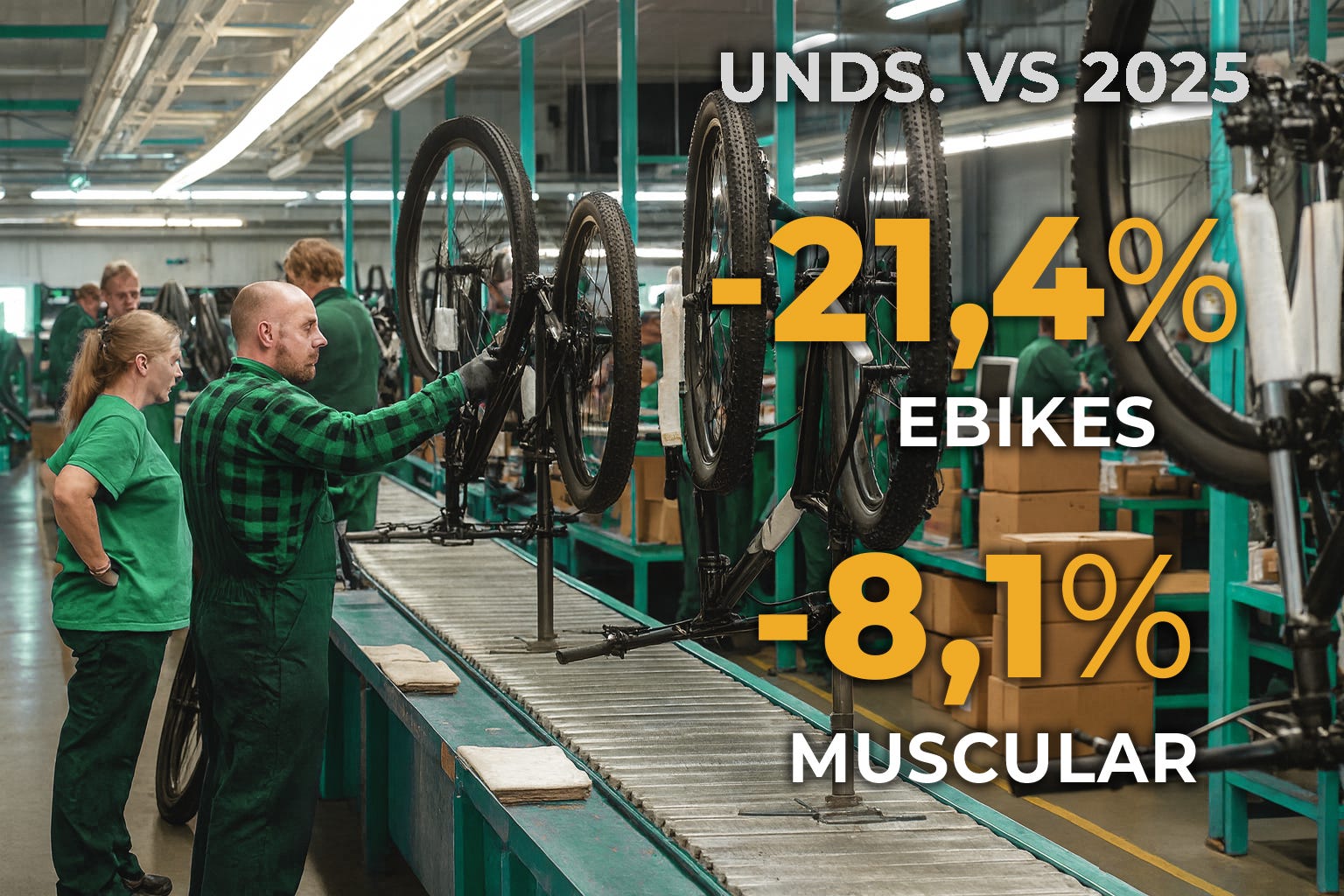 El cierre del 2025 confirma la pérdida de pulso de la industria sectorial en España. La fabricación de bicicletas cae un 8,1% interanual en musculares y un desolador 21,4% en eléctricas.